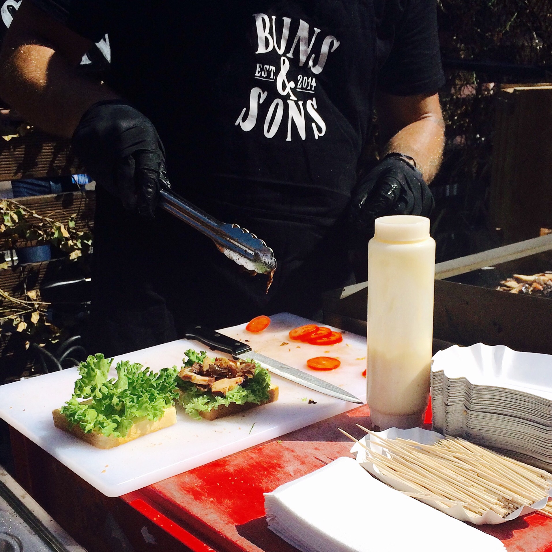 Einer meiner Lieblingsstände ist der von den Jungs von Buns & Sons, die immer gut gelaunt Pulled Pork mit eigens vom Bäcker gebackenen Buns unter die hungrige Meute bringen. Ihr Motto ist Programm: 100% Nonvegan