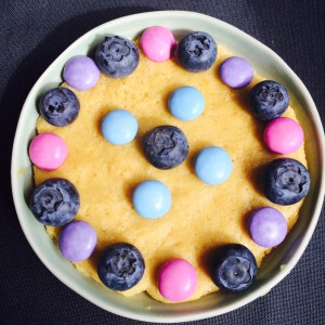 Der Keks kommt bei 800-900 Watt je nach gewünschter Konsistenz (ich mag den Keks auch gern nicht ganz sooo durch) und Mikrowelle etwa 45-70 Sekunden in die Röhre. Wenn ich mir unsicher bin, nehme ich den kurz raus und drücke ihn kurz ein. Heute war der Keks bei 800 Watt eine knappe Minute in der Mikrowelle.