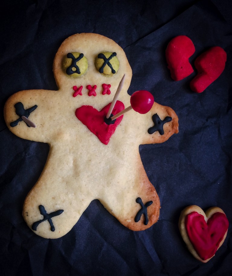 Ich war schon immer ein Fan von Horrorfilmen und Nervenkitzel. Deswegen habe ich dieses Jahr echt Lust gehabt, auch Halloweenkekse zu backen. Da mir nur mit Blut bespritzte Kekse zu langweilig waren und ich die dritte Staffel von American Horror Story besonders cool fand, die in New Orleans spielt und sich auch mit Voodoo beschäftigt, war die Idee von Voodoo Keksen nicht mehr weit 🙂 Normalerweise feiere ich Halloween nicht wie man das so aus den amerikanischen Serien und Filmen kennt. Aber in den letzten Jahren hat Halloween auch in Deutschland immer mehr an Beliebtheit gewonnen und deswegen dachte ich, ihr würdet euch auch über ein passendes Rezept freuen 🙂