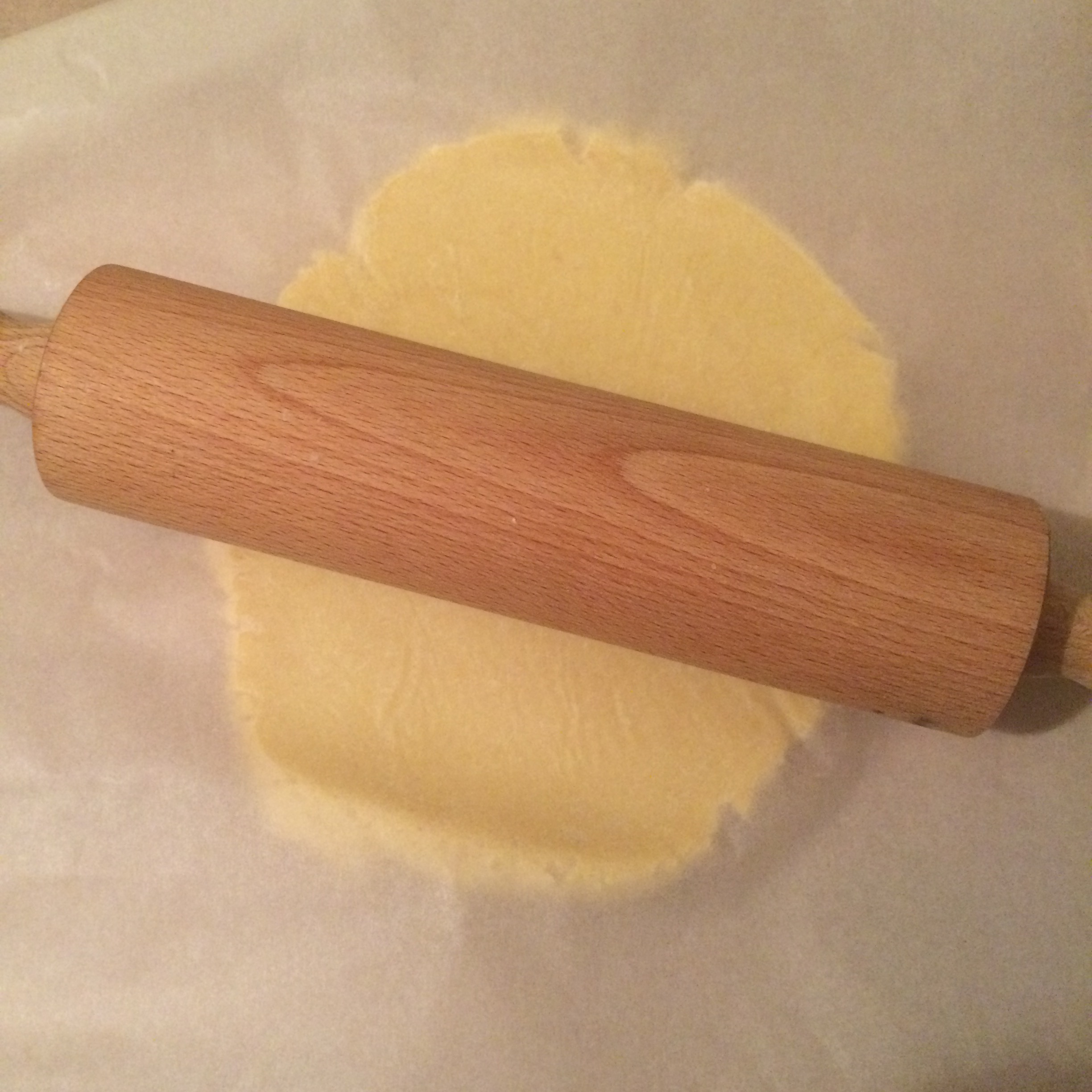 Am Besten lässt sich der Teig nun zwischen zwei Blättern Backpapier ausrollen bis der Teig knapp 0,5 cm dick ist.