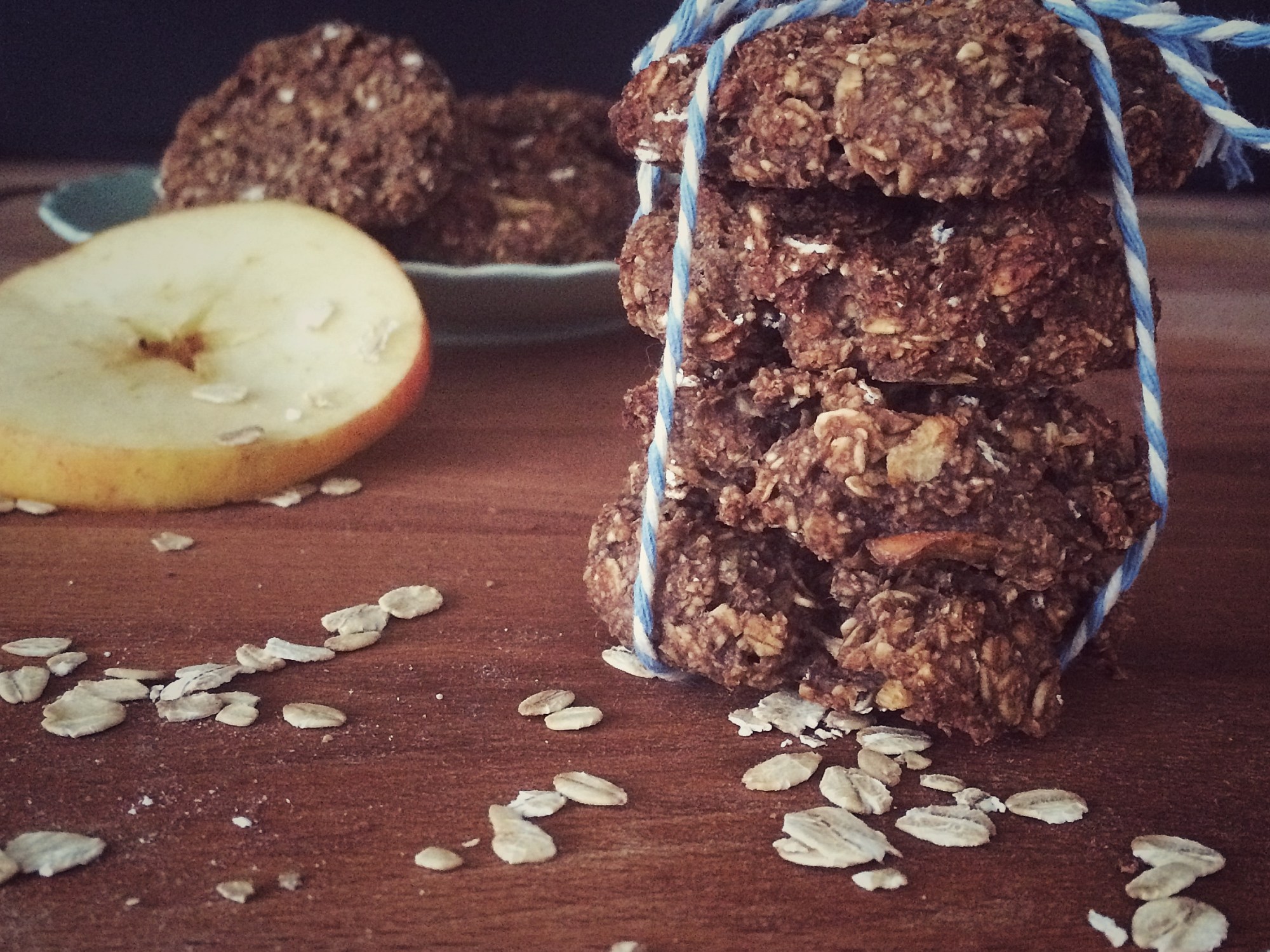 Und das Beste, die Kekse kann man ohne schlechtes Gewissen naschen. Sie sind nämlich zuckerfrei und ohne Milchprodukte oder Weizen. Ja, ich würde jetzt auch denken, hm wie sollen denn schmecken, wenn nix drin ist, aber die Süße kommt durch das Obst und ein bisschen Schokoladengeschmack durch das ungesüßte Kakaopulver 🙂