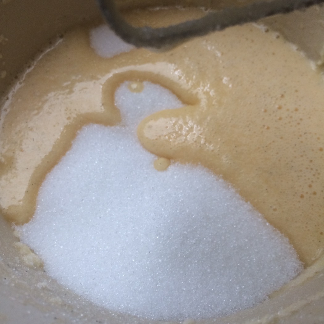 Erst einmal die Butter kräftig schlagen bis sie hell und fluffig aussieht. Das klappt am Besten, wenn die Butter Raumtemperatur hat.
