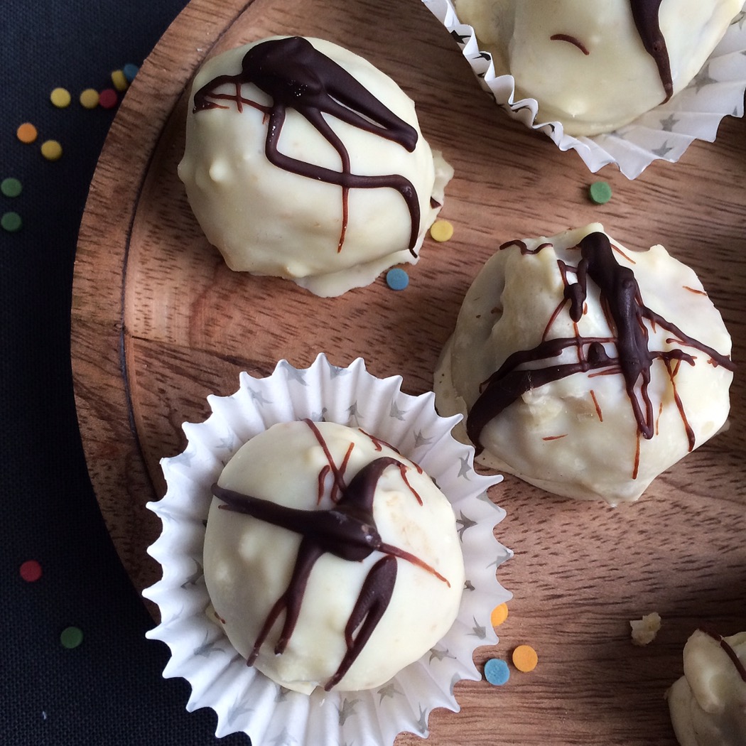 Lange Geschichte, kurzer Sinn: ich habe einfach Kuchenpralinen mit ordentlich Schuss daraus gemacht. Bei denen ist’s ja schließlich egal wie schön der Kuchen zuvor war.