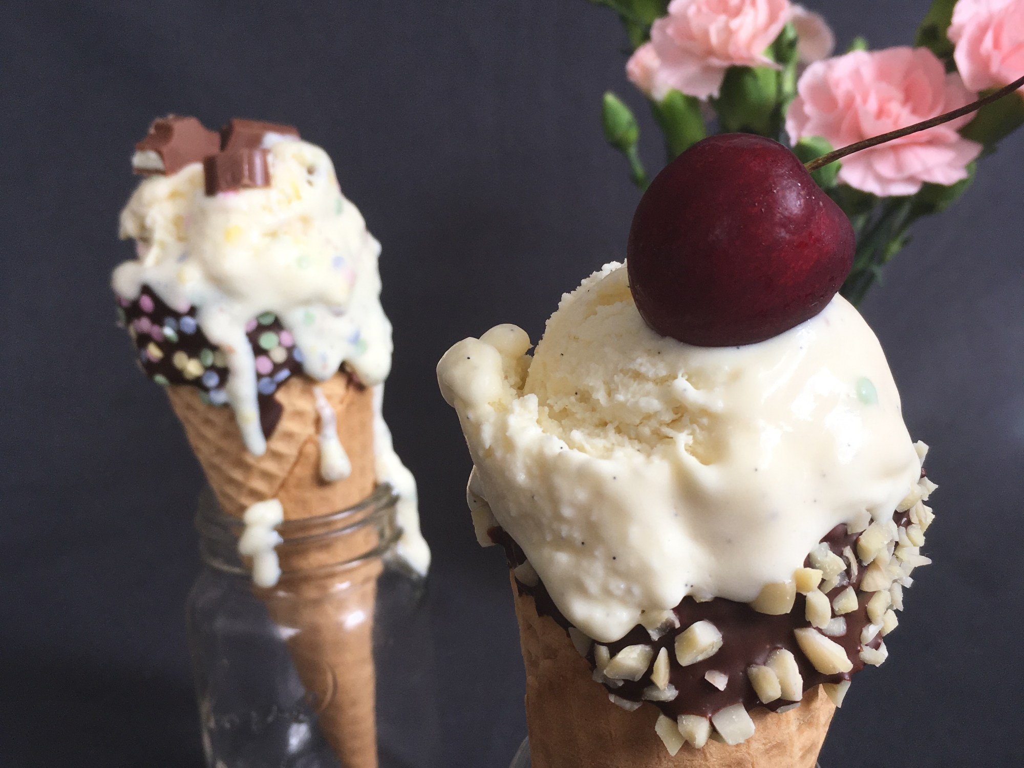 Dann muss nur noch die Schokolade hart werden (schneller gehts im Kühlschrank) und dann kommt das leckere Eis auch schon rein 🙂