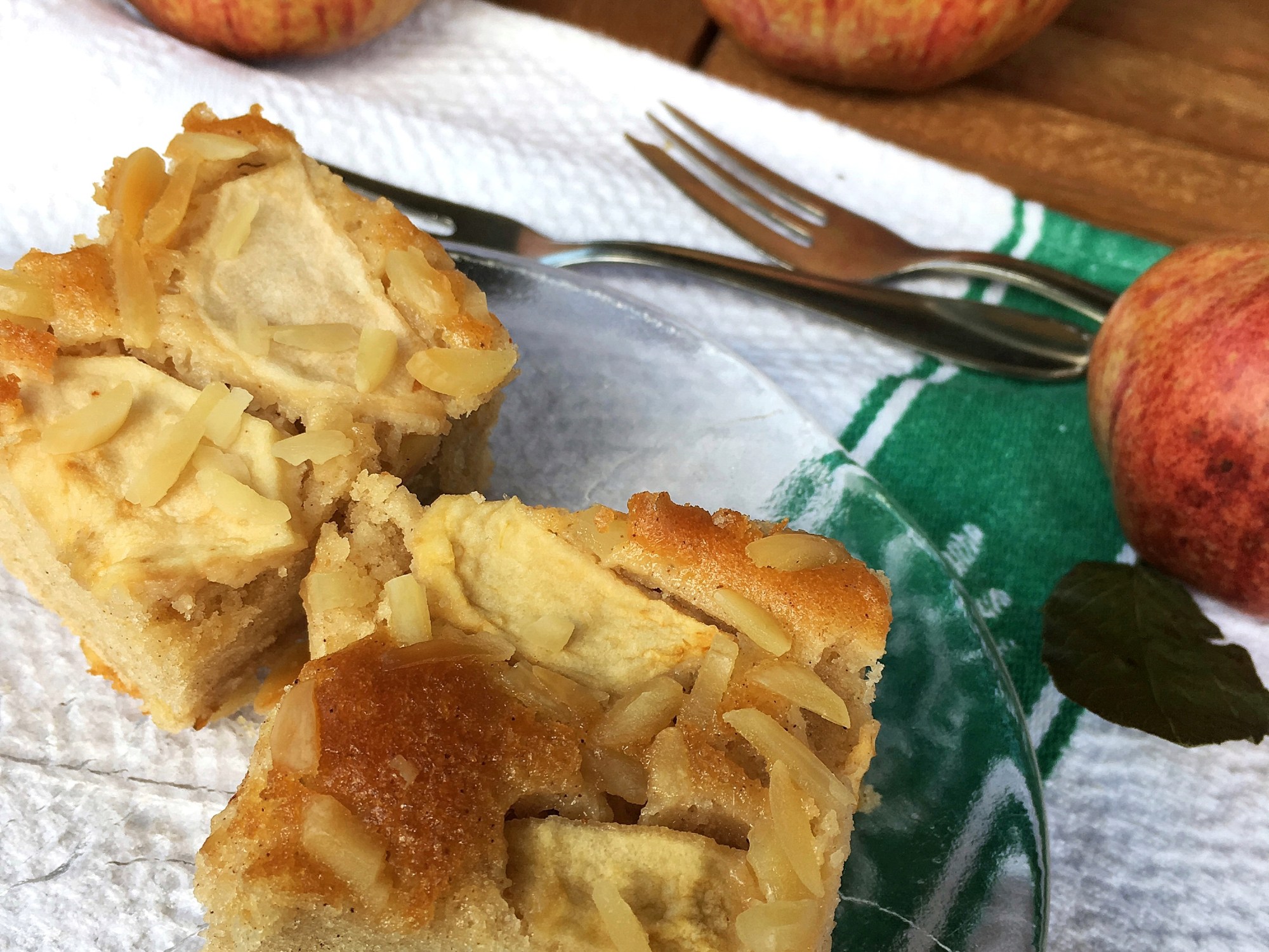 Entstanden ist ein saftiger Apfelkuchen mit Mandelstückchen und einer feinen Zimtnote sponsored by Muttis Garten. Bei mir persönlich darf es auch mal etwas mehr Zimt sein (ich liebe, liebe, liebe Zimt; besonders Zimtschneckchen), aber es ist ja nicht so jedermanns Sache. Von daher habe ich mich da etwas zurückhalten müssen.