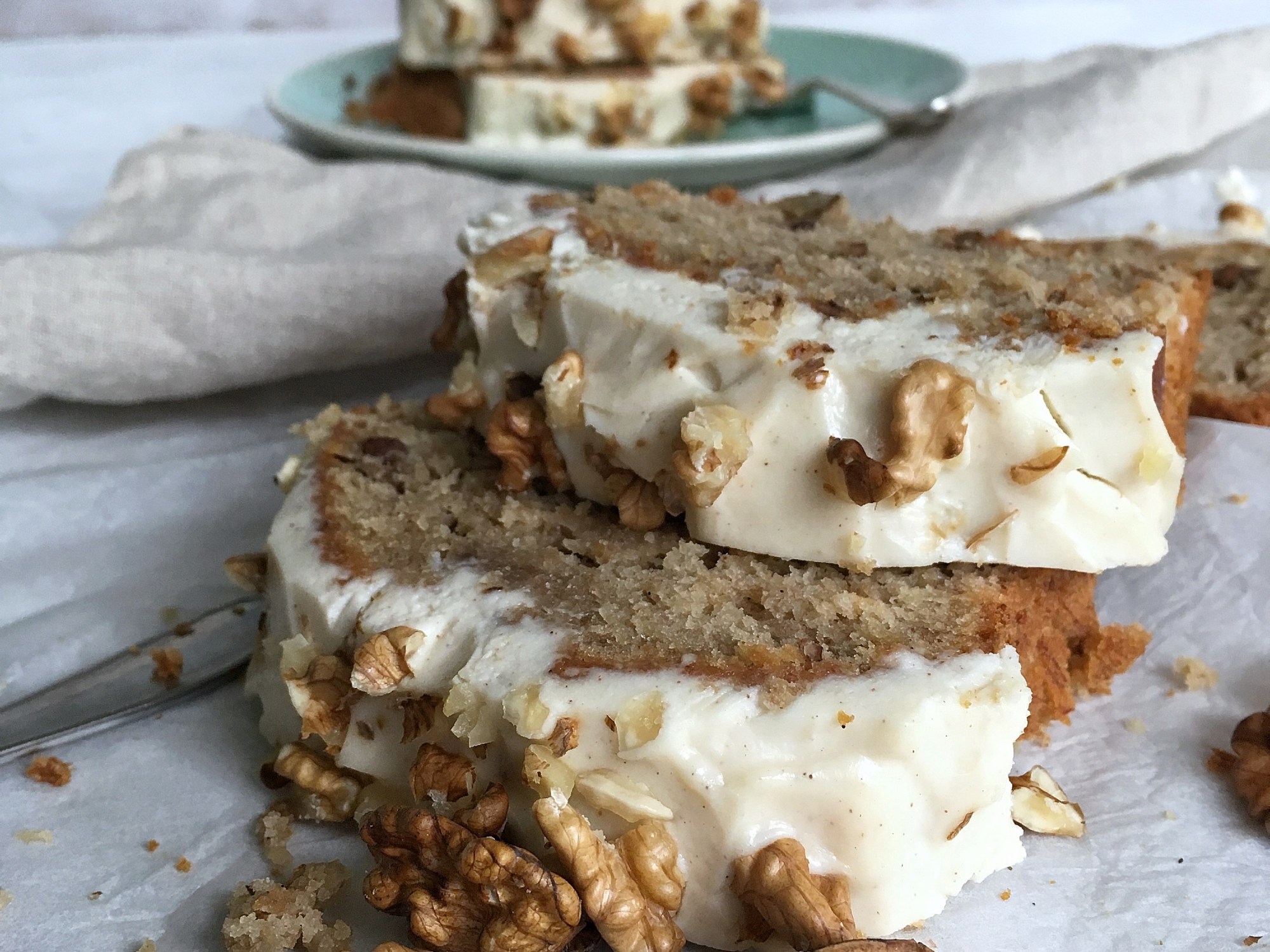 When life gives you bananas, let them lay around until they are overripe and make banana bread! And who says you can’t eat banana bread in summer? It’s the perfect afternoon treat. Although I have to admit, I also love a slice for breakfast… But who doesn’t, right? This is the real deal people! The ultimate banana bread of your dreams. So fluffy and moist as it should be. With a frosting to die for. Ok, maybe not so drastic, but the frosting is A-mazing!