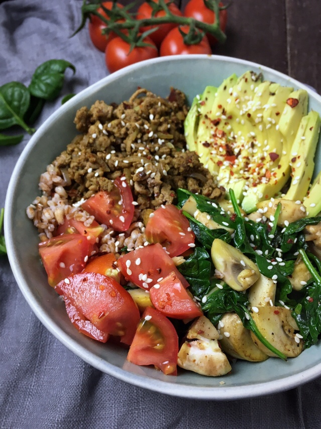 A few days ago I was in the mood for something fresh, but I also wanted something warm to eat as dinner. So I bought some delicious fresh ingredients, minced beef and spelt and made this super tasty bowl.