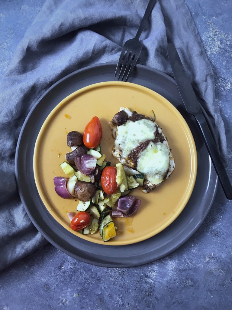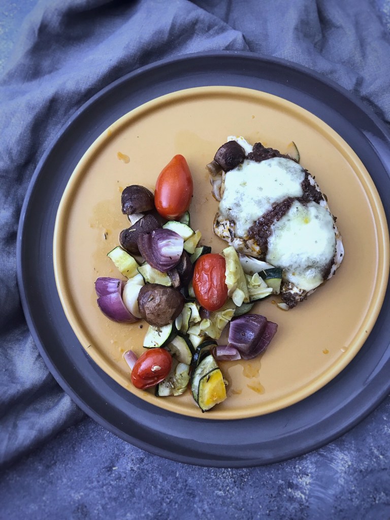 Die heutige Variante kommt mit feinen Pesto-Hähnchenschnitzeln daher, die mit etwas Mozzarella überbacken werden. Dazu passt buntes Italienisch angehauchtes Gemüse einfach perfekt!