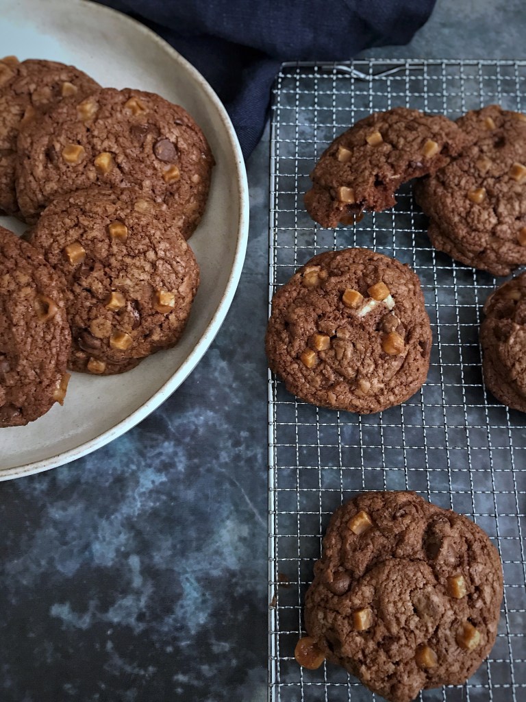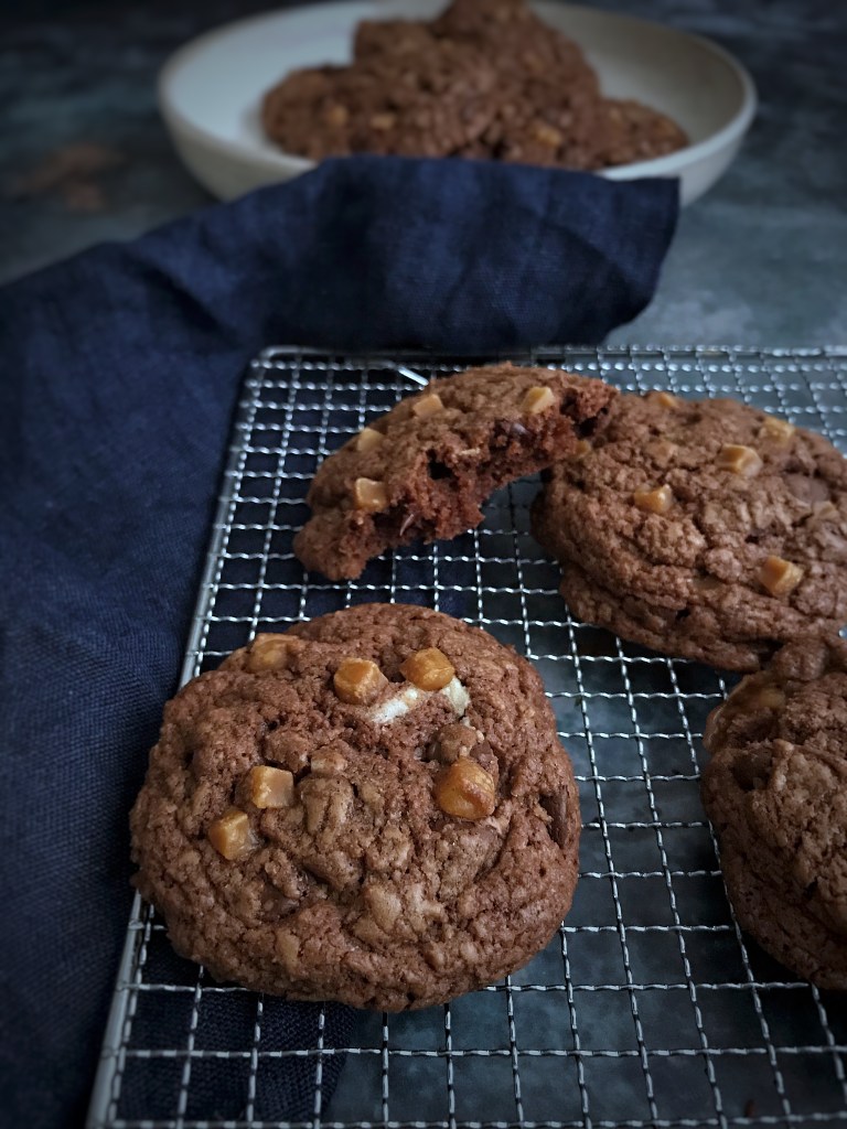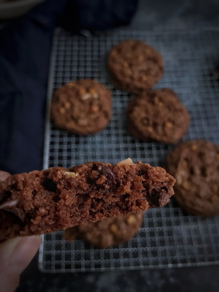 Ich hatte diese köstlichen Kekse schon einmal im April getestet und seitdem sind sie mir einfach nicht mehr aus dem Kopf gegangen. Sie sind sooo herrlich schokoladig, dass man aufpassen muss nicht direkt den ganzen Keksteig zu naschen. Ich hab etwas zu viel Teig gegessen, sonst hätte ich anstatt von 14 doch 15 oder 16 Kekse rausbekommen 😉