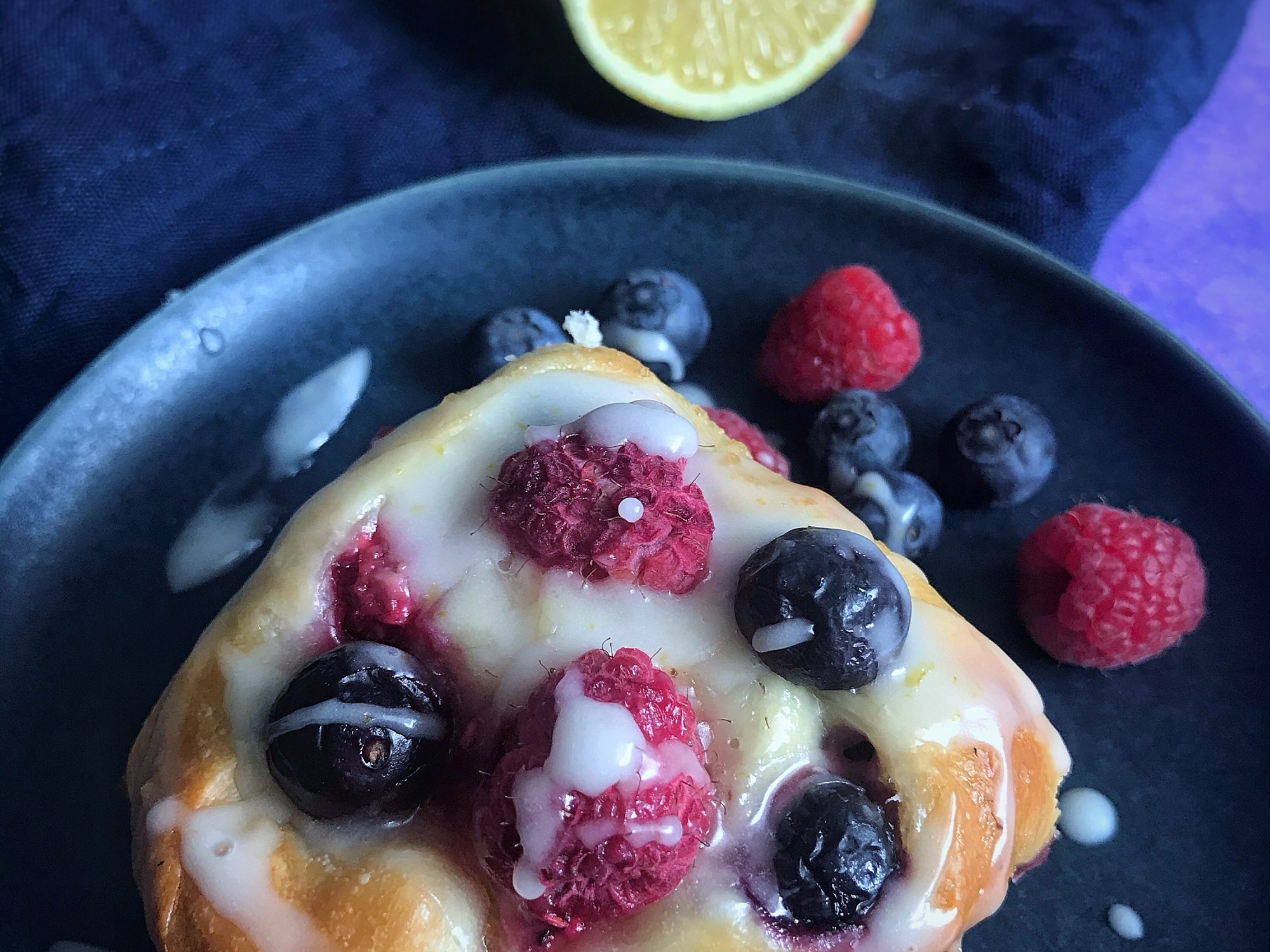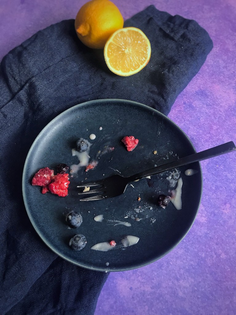 Zitronenzuckerguss (einige EL Puderzucker mit Abrieb und Saft einer halben Biozitrone) darüber geben und genießen 💜