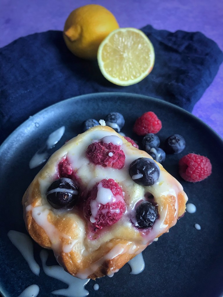 Da es ja aktuell eine kleine Herausforderung ist frische Hefe und Mehl zu finden, hab ich mir einfach einen fertigen Hefeteig geschnappt und damit Beerenschnecken gemacht 💜