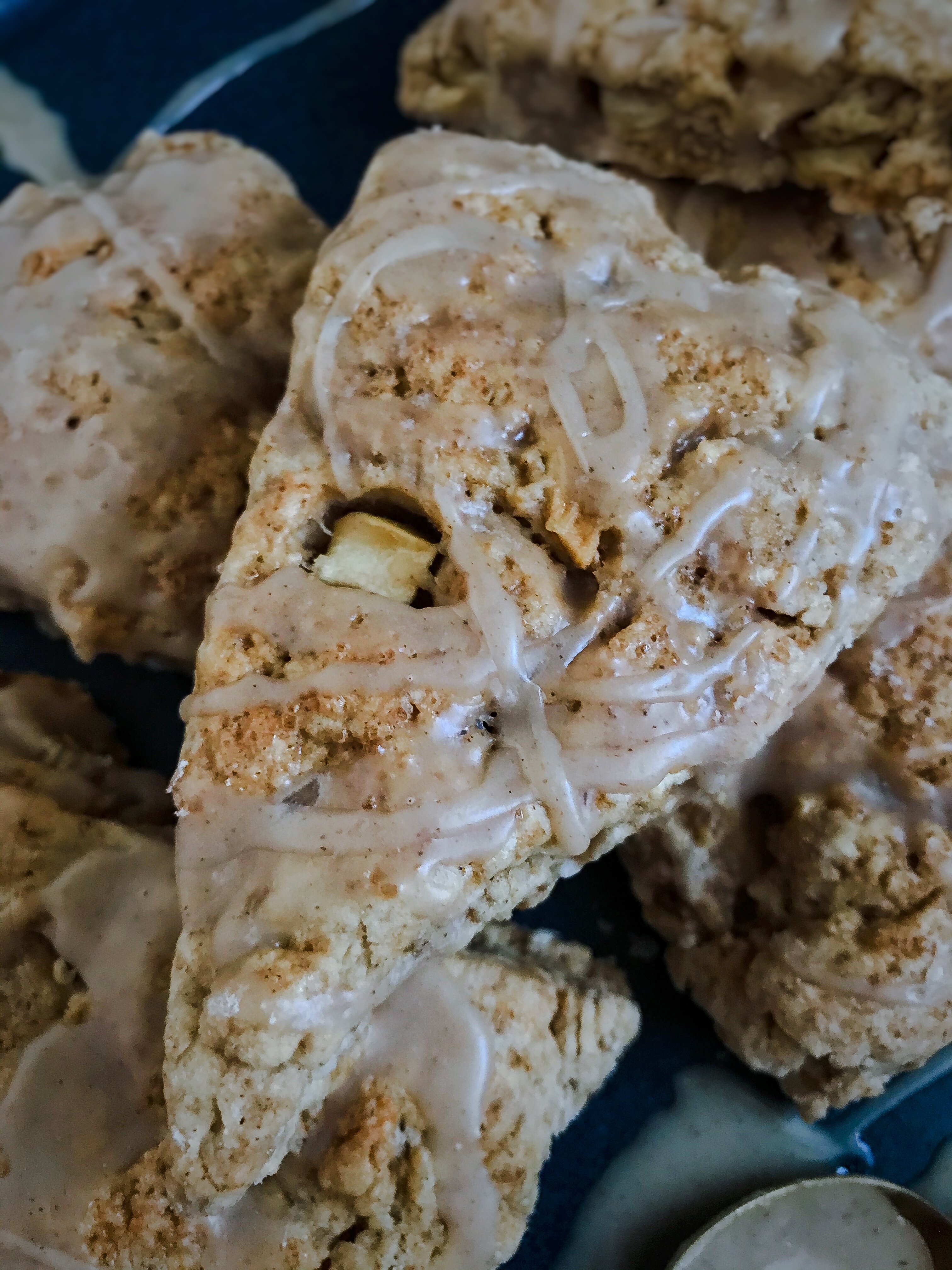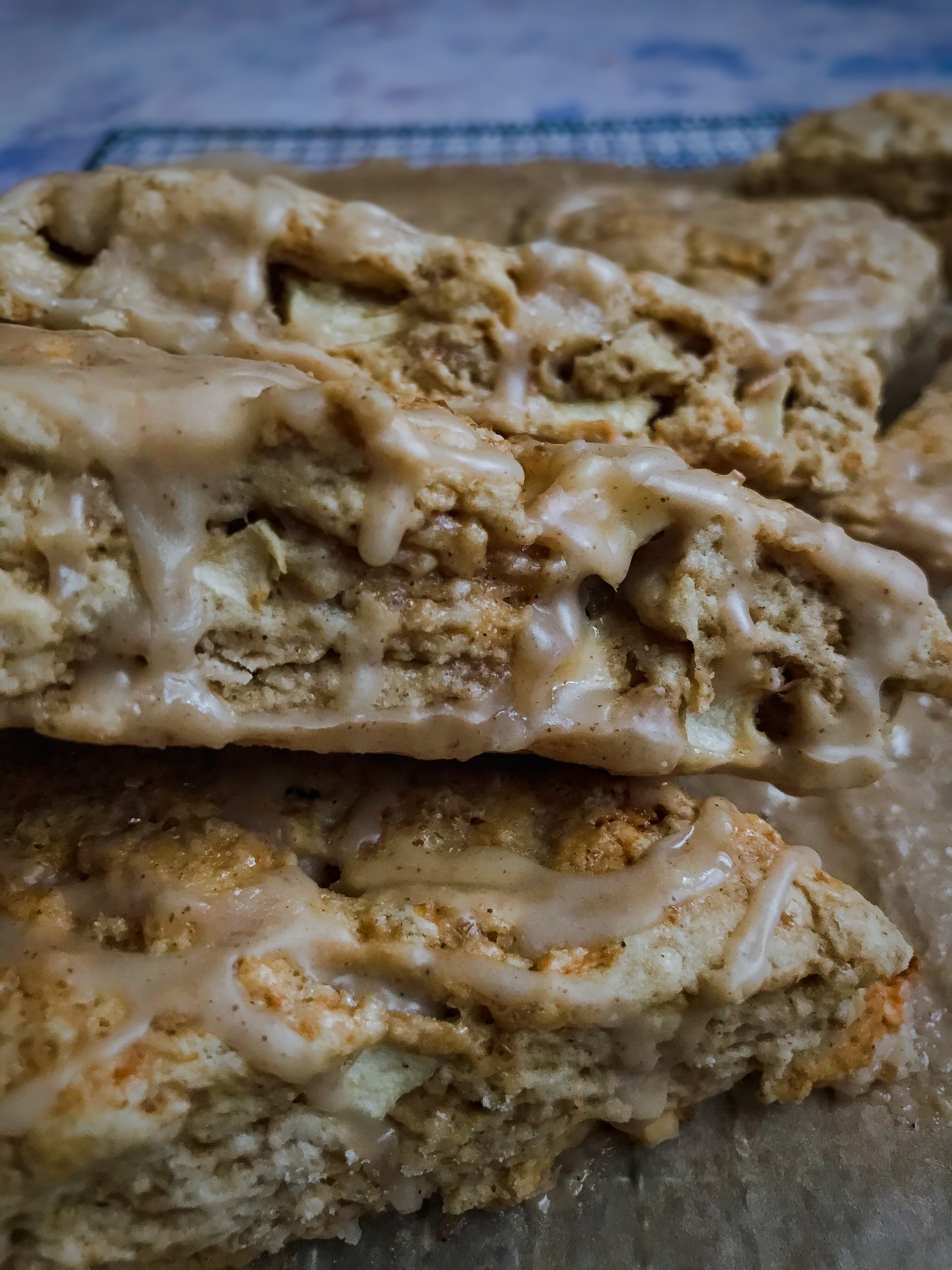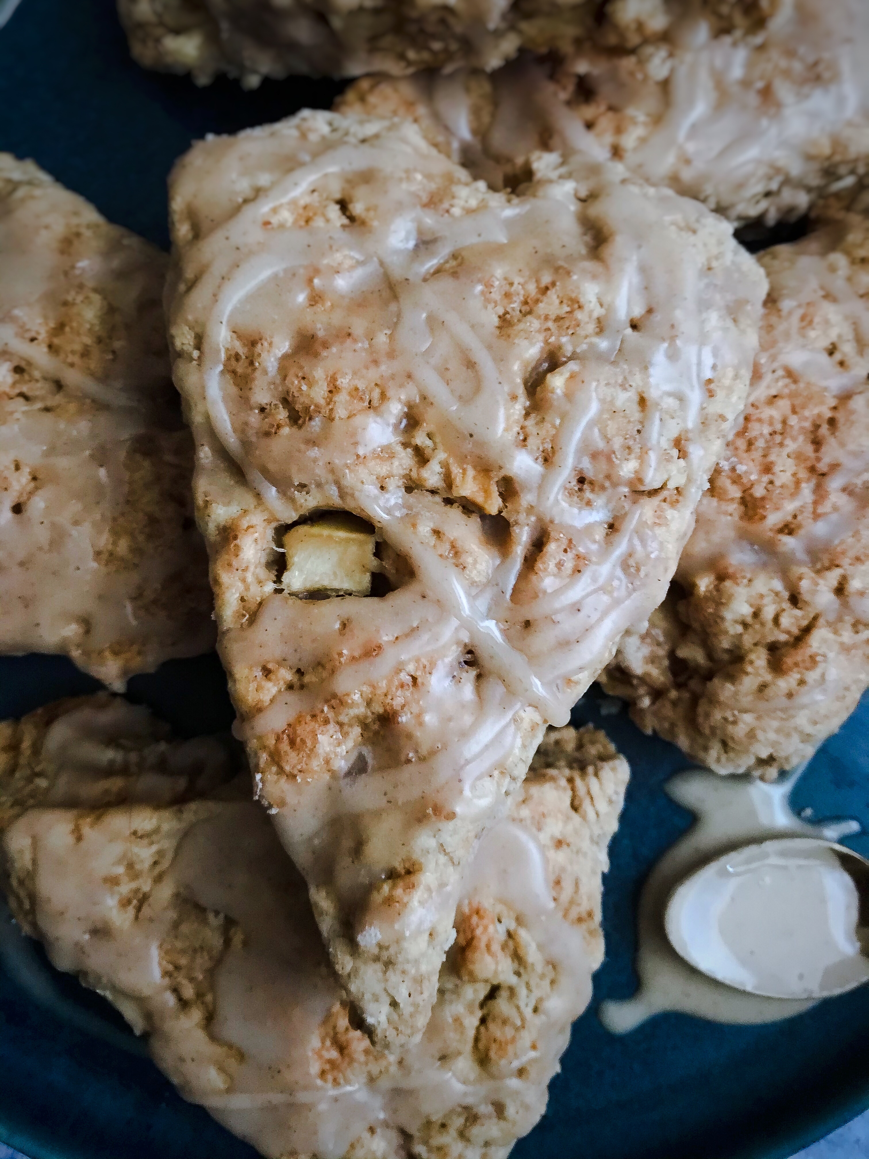 Heute gibt es leckere Apfelscones mit köstlichster Eierlikör-Zimt-Glasur. Achso, im Teig ist auch noch bisschen Eierlikör – ist ja Weihnachten und so.