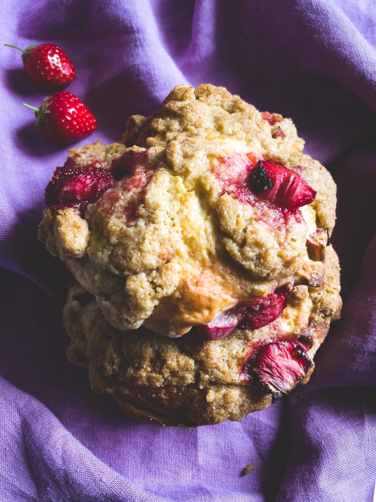 Heute gibt es erstmal herrlich fluffige Streuselplätzchen mit der Dream Kombination Rhabarber und Erdbeeren.