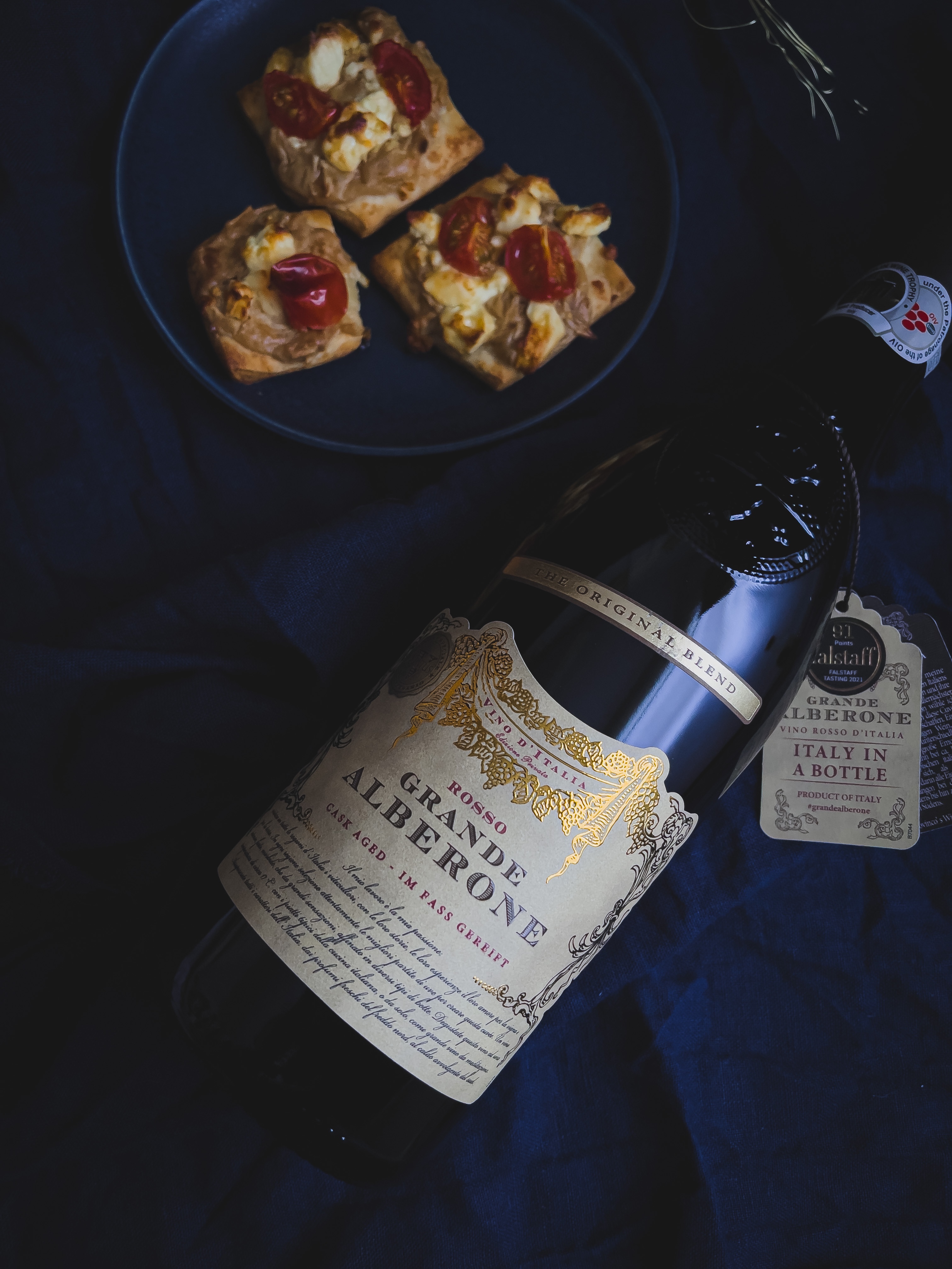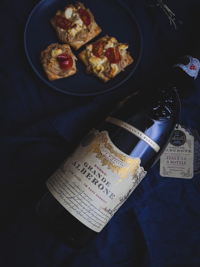 So oder so bin ich aber immer ein großer Fan von gutem Essen und leckeren Getränken – Überraschung 😉 Bereits vor knapp 13 Jahren hab ich zu einem Silvesterabend mit Freunden ein super easy Fingerfood mitgebracht, was ich euch heute hier zeigen möchte: es sind kleine Ecken aus fertigem Pizzateig, die mit einer Mischung aus Schmand und Zwiebelsuppe aus der Tüte sowie etwas Feta bestrichen werden. Wahlweise kann man dann noch frische Tomaten drauf machen und es schmeckt einfach sooo lecker und das sowohl heiß, lauwarm oder am späteren Abend kalt, was ich ja super praktisch finde. Dazu noch nen leckerer Rotwein (ich mag ja nicht sooo gern Sekt wegen der Kohlensäure) und der Abend ist ein kleiner Erfolg 🙂 Den passenden Rotwein hab ich mir dieses Mal beim Aldi gekauft, die für den perfekten Silvesterabend eine großartige Auswahl an Wein (und auch Sekt) für jeden Geschmack und auch den kleinen Geldbeutel haben. Ich muss ja auch zugeben, dass einer meiner liebsten Rosé Weine vom Aldi ist, der steht immer griffbereit im Keller, weil es den saisonal nicht immer gibt. Also wenn ihr einen Wein findet, den ihr liebt, lieber mal 2-3 Flaschen mehr kaufen 🙂