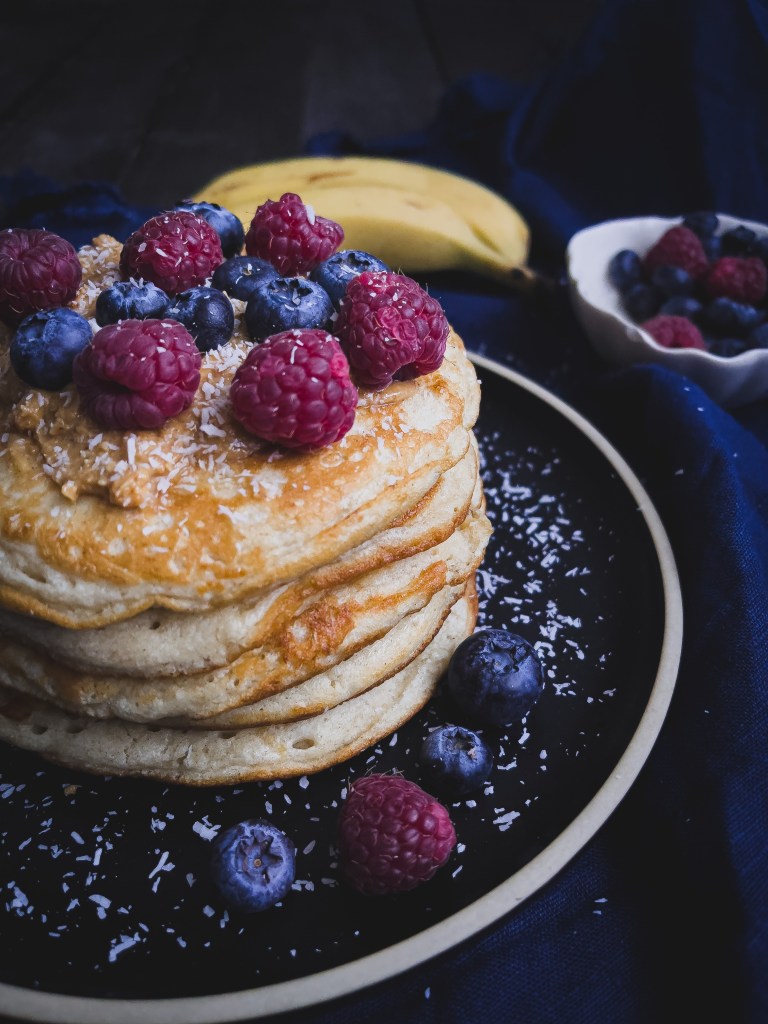 • Außerdem Belag nach Geschmack, zB Beeren, Mandelmus, Kokosflocken, Ahornsirup, krosser Bacon, Apfelkompott, Zimt-Zucker