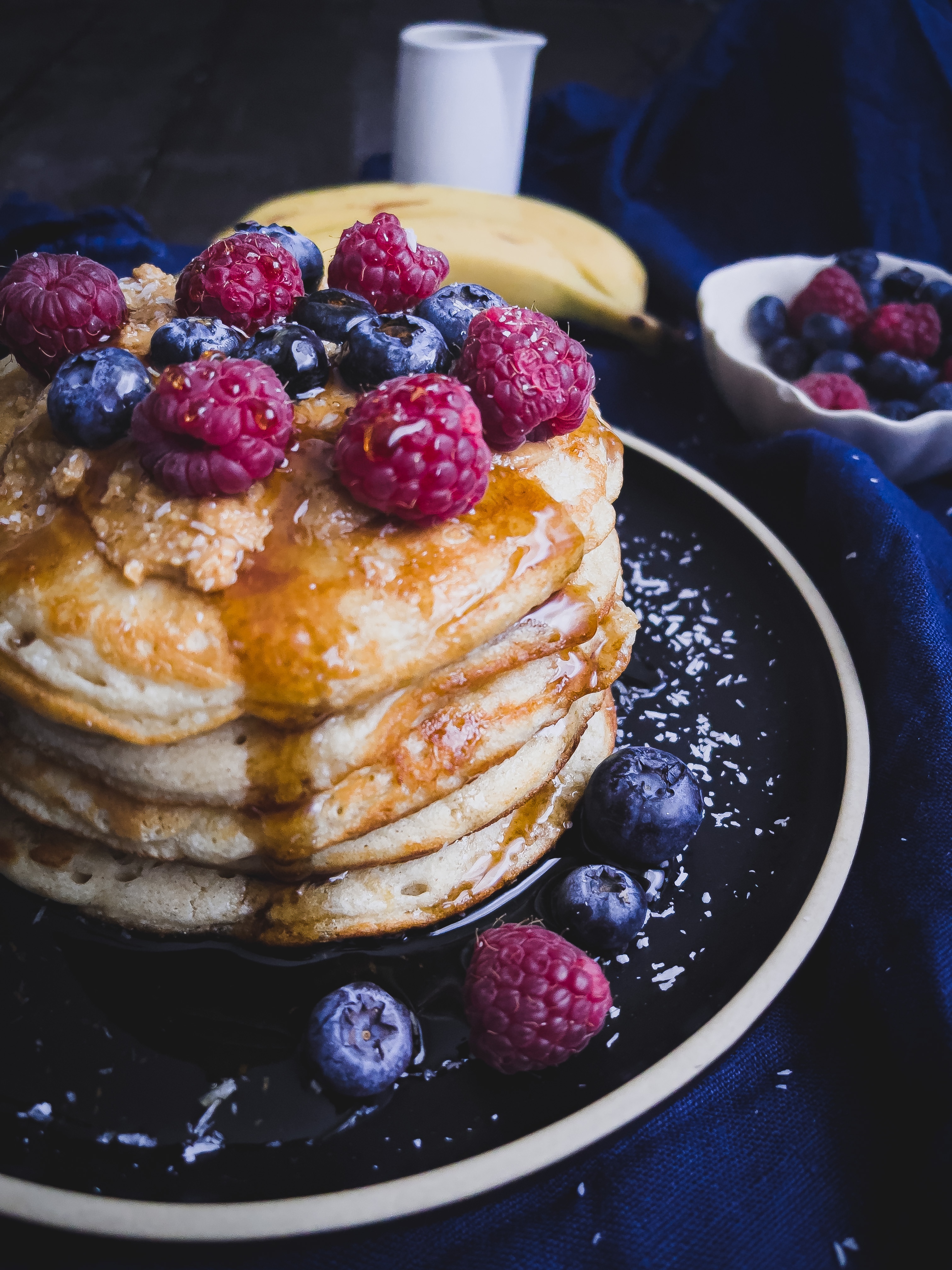 • Außerdem Belag nach Geschmack, zB Beeren, Mandelmus, Kokosflocken, Ahornsirup, krosser Bacon, Apfelkompott, Zimt-Zucker