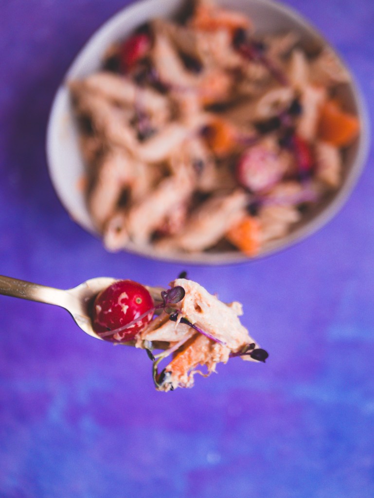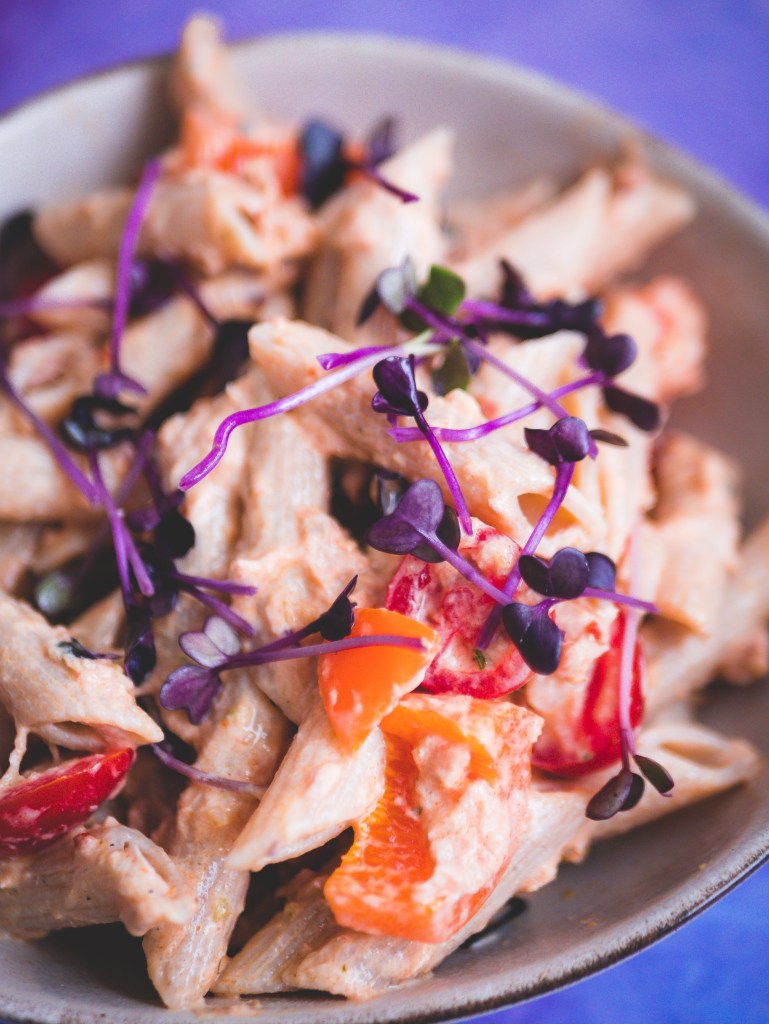 Bei gutem Wetter häufen sich oft die Einladungen zum Grillen, da darf ein guter Nudelsalat nie fehlen! Aber auch als Hauptgericht schmeckt dieser Nudelsalat mit Thunfisch, knackiger Paprika und tomatigem Pesto ausgezeichnet!