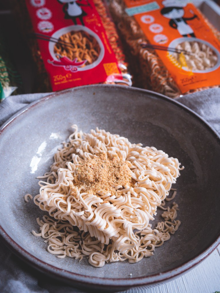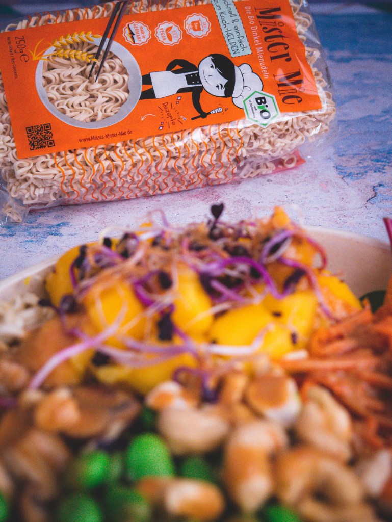 Meine liebsten Mienudeln sind schon seit einiger Zeit die von Misses Mie & Mister Mie. Hier nutze ich gerne die Dinkelvariante, aber auch die Chili-Mienudeln oder Gemüse-Mienudeln sind der Oberknaller! Die hochwertigen und leckeren Mienudeln habe ich bereits für mein Ramen Rezept genutzt 🙂