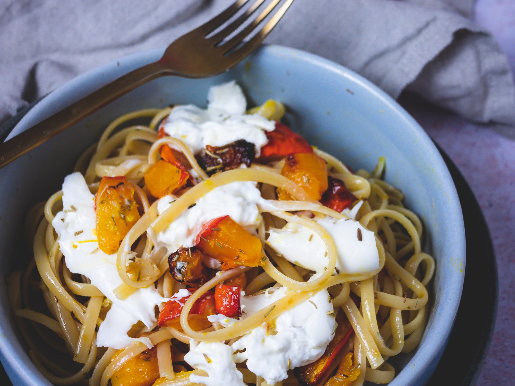Pasta mit zimmerwarmen Burrata toppen und genießen!