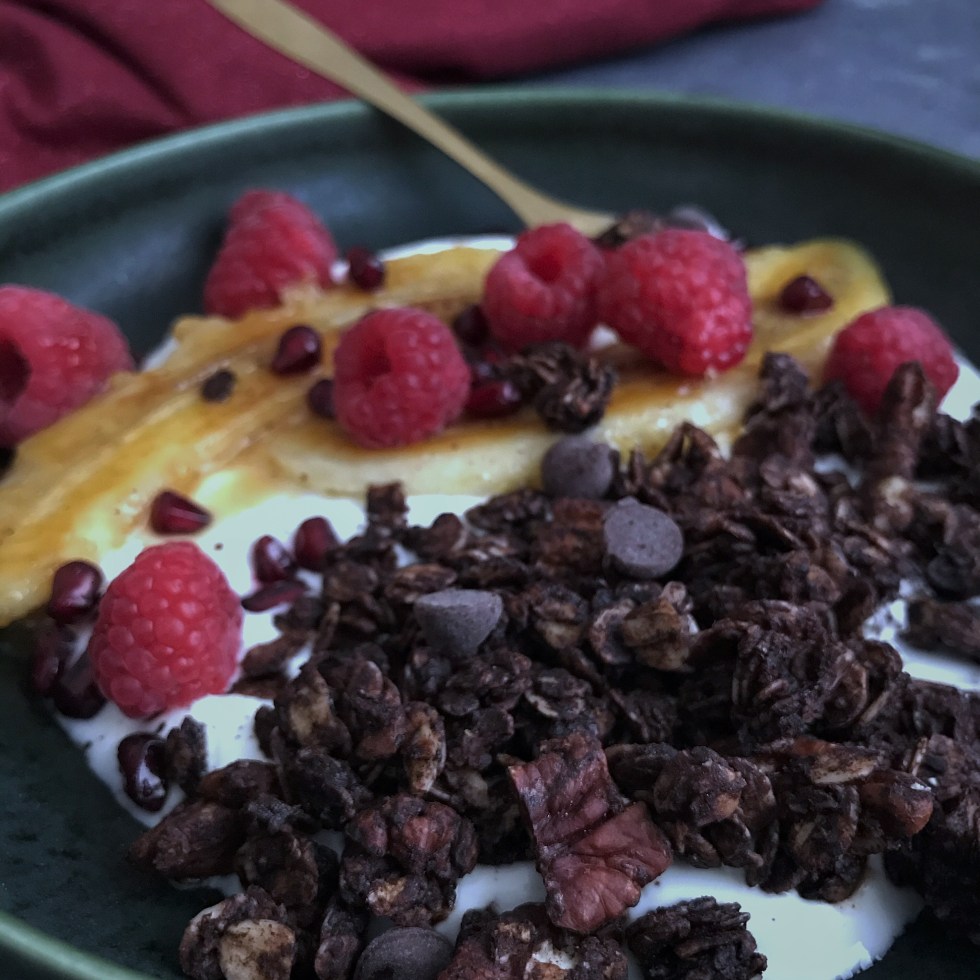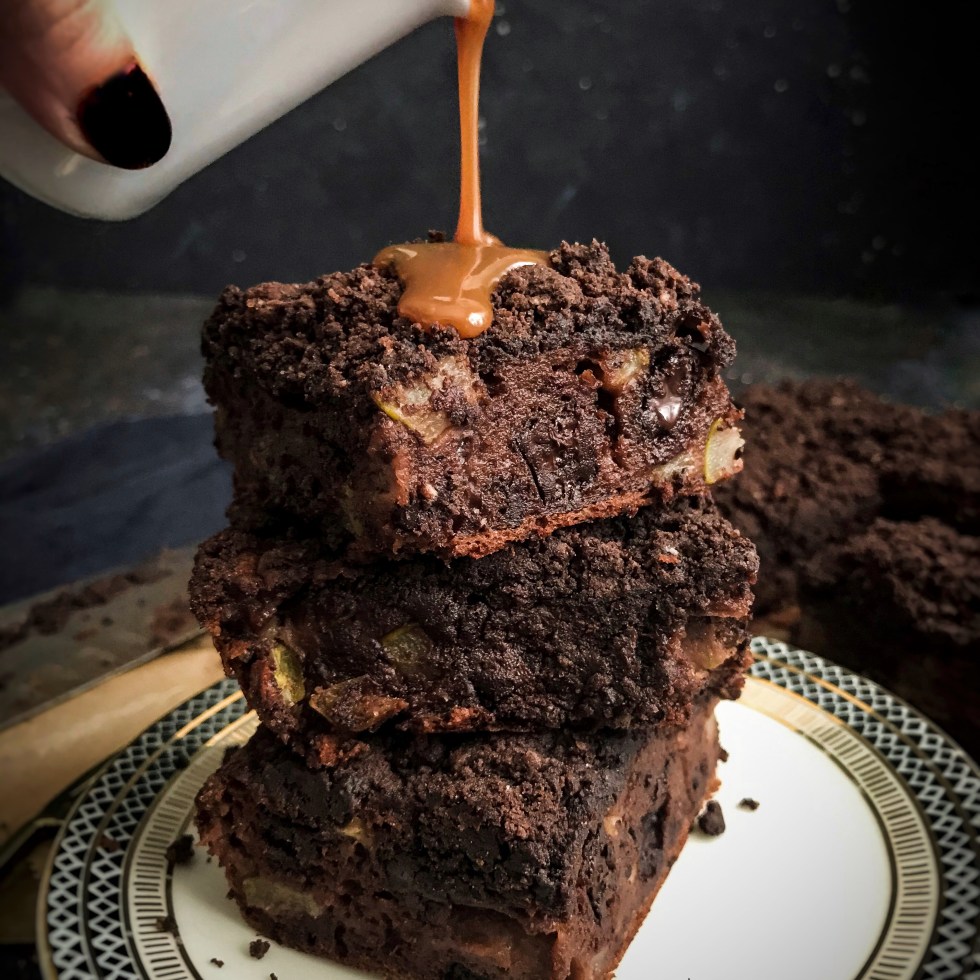 Schokoladiges Bananenbrot mit Birnen und Streuseln