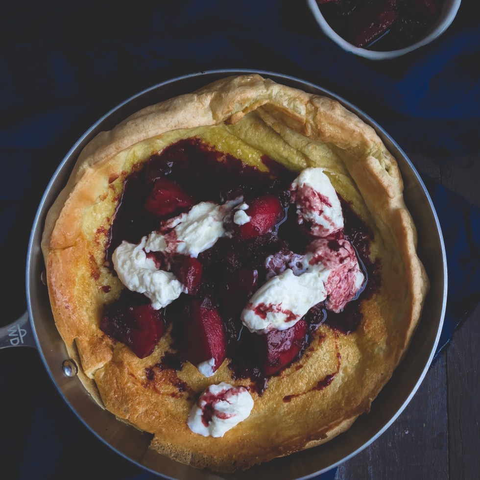 Dutch Baby mit Apfelröster und Ziegenfrischkäse